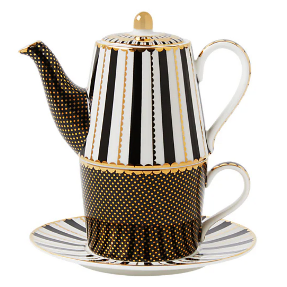 Il sublime votre rituel du thé du matin avec une théière de 340 ml dotée d’un filtre, harmonieusement empilée sur une tasse et sa soucoupe assorties. Son design spectaculaire, rehaussé de véritables détails en or, en fait un cadeau idéal et un indispensable pour tous les amoureux de thé.